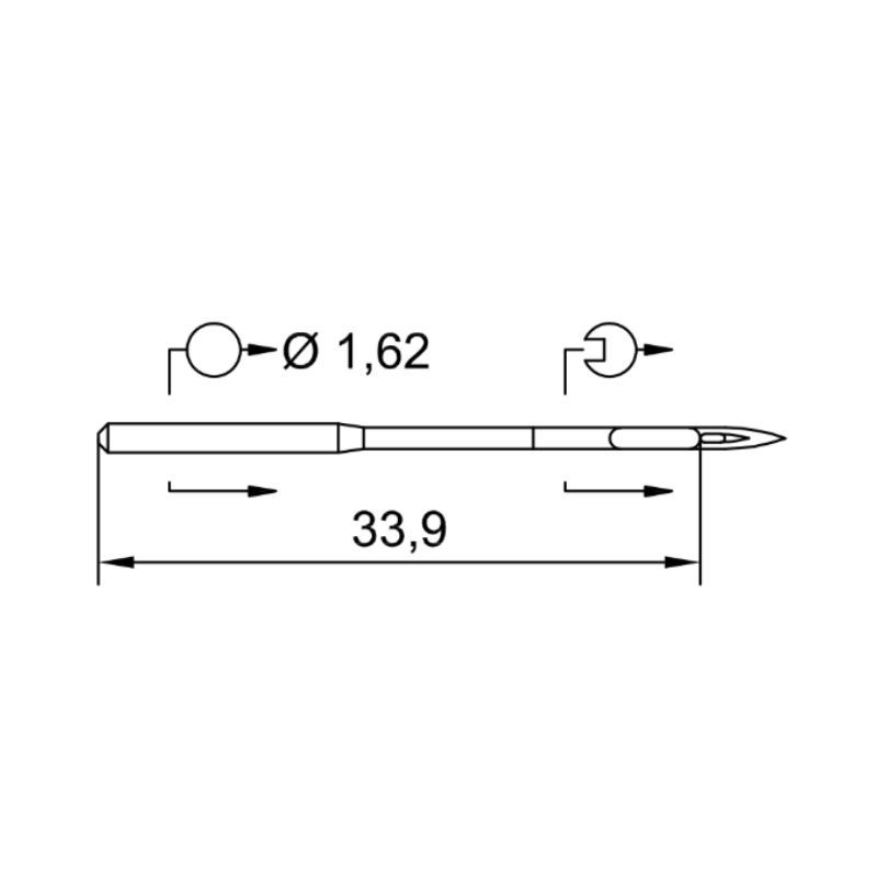Aguja 287 WH SCHMETZ para máquina plana industrial de tronco fino.