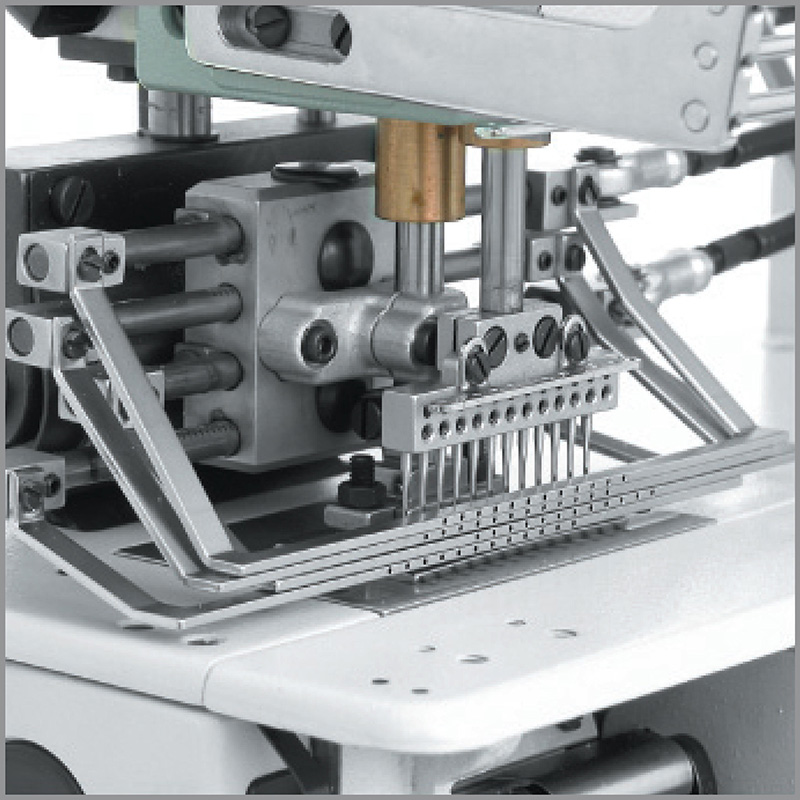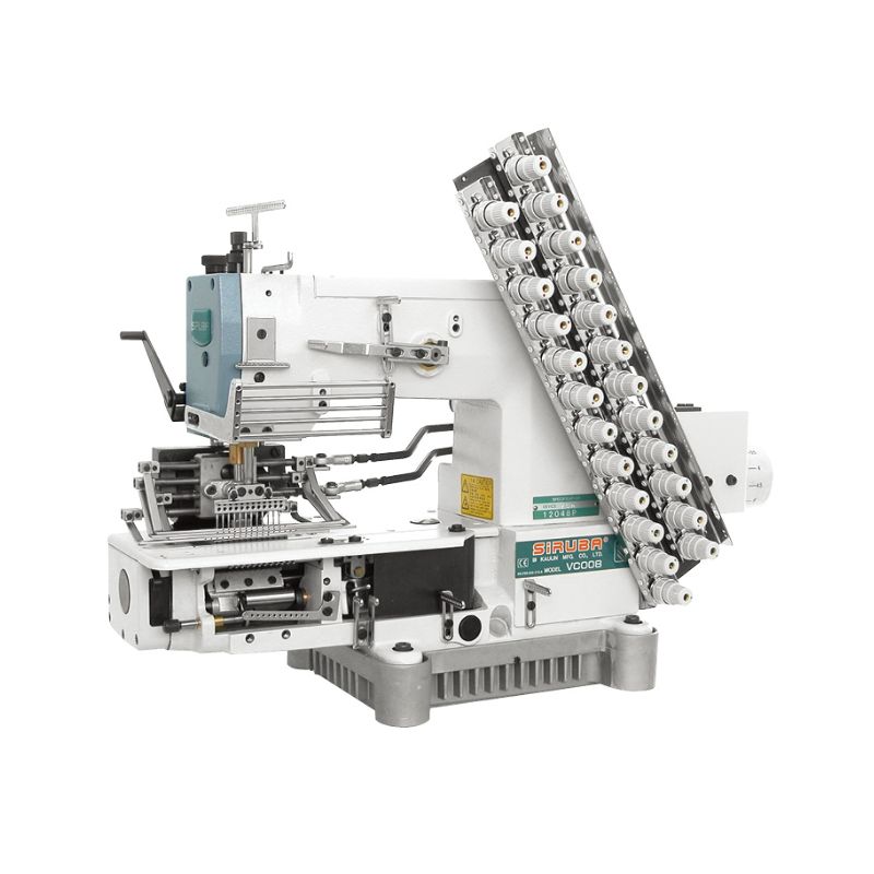 Máquina multiagujas SIRUBA VC008A-12048P/VSSM de 12 agujas 24 hilos equipada con 16 levas de distintos patrones.